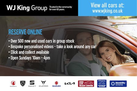WJ KING WINTER USED CAR SALE EVENT – HURRY, MUST END SOON! Get £200 OFF every used car in stock (Ex. Demos & Pre-reg) Plus, enjoy an extra £300 Part Exchange Allowance when you trade in your current car with us (T's & C's apply). This limited-time offer ends soon, so act fast and drive away with an unbeatable deal!