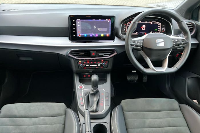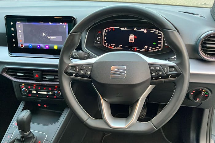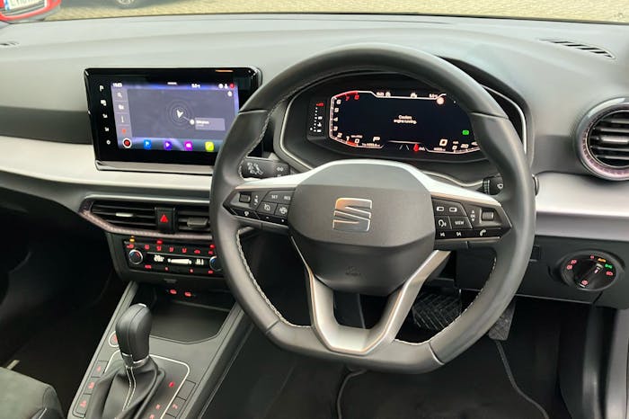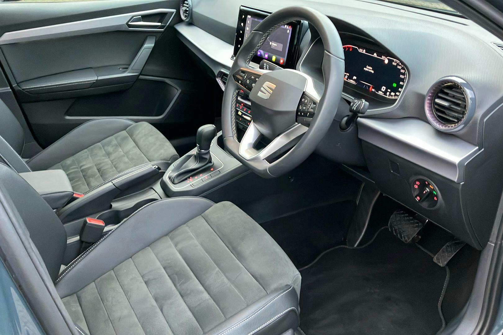 Discover the 2021 SEAT Ibiza XCELLENCE Lux, finished in striking Fiord blue. Previously used as a demonstrator, this five-door hatchback offers effortless driving with its automatic transmission and front wheel drive layout. Enjoy a relaxed ride with comfort suspension, and stay connected thanks to the 9.2-inch navigation system and Full Link smartphone integration. The digital cockpit and interior ambient lighting create a modern and welcoming environment. Safety is prioritised with features like a rear view camera and advanced safety packs. Experience convenience with keyless entry and go, rain-sensing wipers, and dual zone climate control. The Ibiza delivers excellent efficiency, achieving a combined 50.4 mpg and offering a spacious boot with 355 litres of space. Accommodating up to five passengers, this stylish hatchback is ULEZ compliant, making it ideal for city driving and beyond. Make the most of every journey in this well-equipped and practical model.