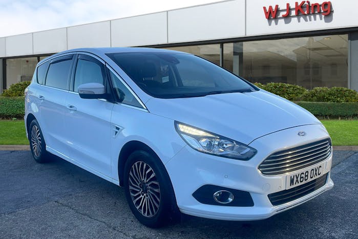 Experience practicality and modern style with this used Ford S-MAX Titanium, finished in a crisp white. First registered at the end of 2018, this versatile seven-seater MPV is designed for active families or those needing generous space – with up to 2,020 litres of boot capacity when you need it most. Under the bonnet, you’ll find a responsive 1.5-litre engine with 163 horsepower, delivering a smooth drive and a top speed of 124 mph. With one previous keeper, this car blends comfort with thoughtful touches like 17-inch alloy wheels, ambient lighting, a Ford navigation system with touchscreen, and a heated windscreen for quick getaways in cooler months. You'll also benefit from rain-sensing wipers, rear privacy glass, and a host of features crafted for convenience and safety. According to its Euro 6 compliance, this vehicle is ULEZ compliant for driving in urban areas.