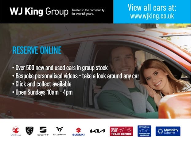 WJ KING WINTER USED CAR SALE EVENT – HURRY, MUST END SOON! Get £200 OFF every used car in stock (Ex. Demos & Pre-reg) Plus, enjoy an extra £300 Part Exchange Allowance when you trade in your current car with us (T's & C's apply). This limited-time offer ends soon, so act fast and drive away with an unbeatable deal!Admin Fee: £99